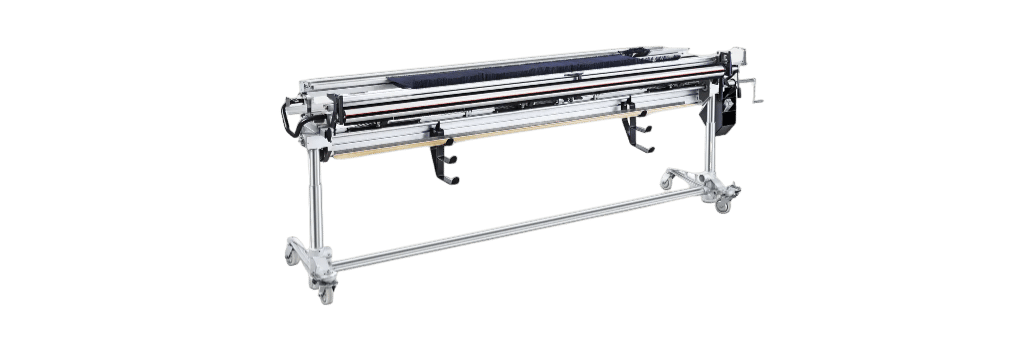 Gracias a la amplia gama de posibilidades de configuración, que incluye modos de sujeción seleccionables y bastidores de acoplamiento para máquinas de tejer más anchas, el bastidor se puede adaptar de forma óptima a cualquier necesidad específica. Se pueden manejar anchuras de atado de 100 a 560 cm.